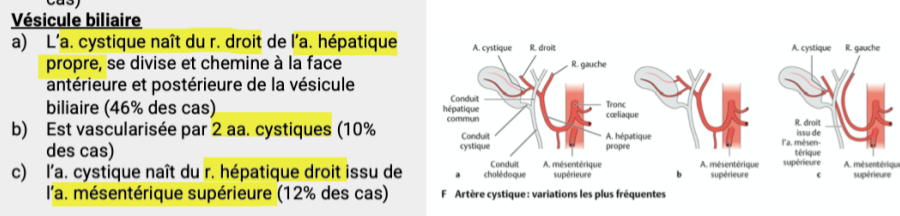 Quelle est la vascularisation de la vésicule biliare + variation ?