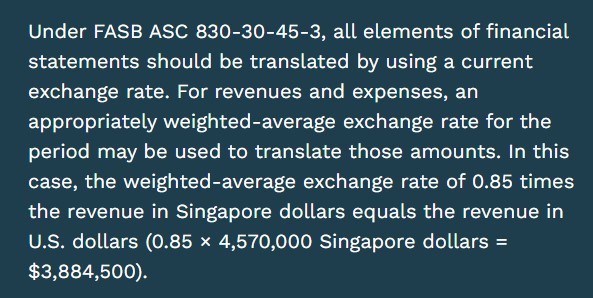 Malay reported revenue of 4,570,000 Singapore dollars for the current period. When converting Malay’s revenue account to U.S. dollars at year-end, how much should be reported in U.S. dollars?