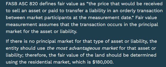 A company owns land and a building that houses its manufacturing operations. When the company purchased the manufacturing facility 10 years ago, the purchase price allocated to the land account was $120,000. The manufacturing facility is located in an area that was once the site of many factories. The owners of many of the neighboring factories have recently sold their facilities to residential real estate developers. The company’s land is also suitable for residential development. The estimated current value of the land as part of the manufacturing facility is $150,000. The estimated current value of the land as an undeveloped investment is $130,000, and the current value of the land as part of a residential development would be $180,000. What is the fair value of the land?
