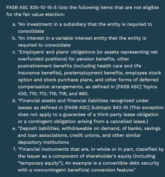 Which of the following is not an eligible item for the fair value measurement option under FASB ASC 825-10-15-4?