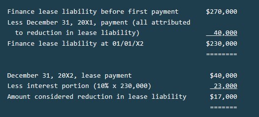 On December 30, 20X1, Ames Co. leased equipment under a finance lease for 10 years. It contracted to pay $40,000 annual rent on December 31, 20X1, and on December 31 of each of the next nine years. The finance lease liability was recorded at $270,000 on December 30, 20X1, before the first payment. The equipment’s useful life is 12 years, and the interest rate implicit in the lease is 10%. Ames uses the straight-line method to depreciate all equipment. In recording the December 31, 20X2, payment, by what amount should Ames reduce the finance lease liability?