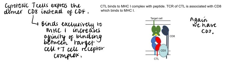 - this form of antigen recognition results in close contact of t cells + cells that secrete cytokines + target cells
