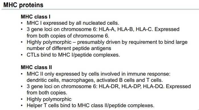 - 2 types of MHC