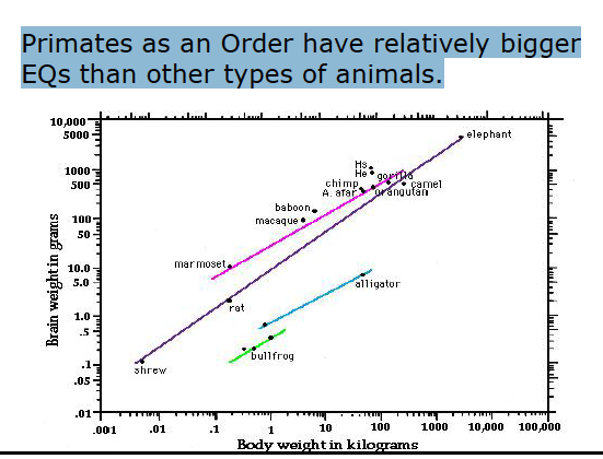 Primates as an Order have relatively bigger EQs than other types of animals.