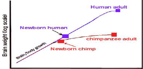 • It is not just in terms of brain size that we seem underdeveloped at birth: