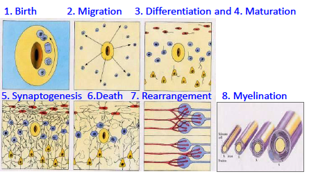 What are the stages of brain cell development?