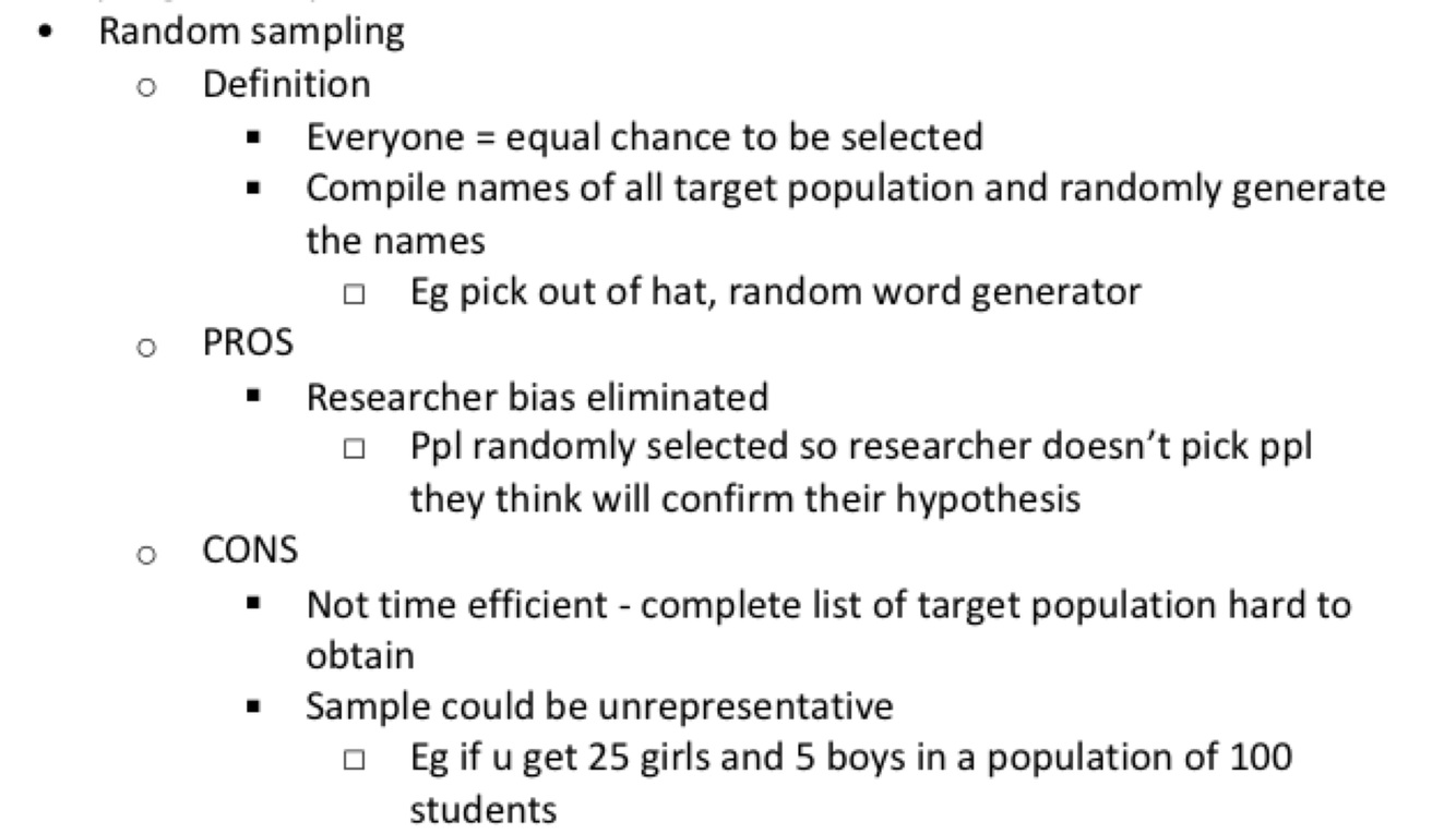 □ Ppl randomly selected so researcher doesn’t pick ppl they think will confirm their hypothesis