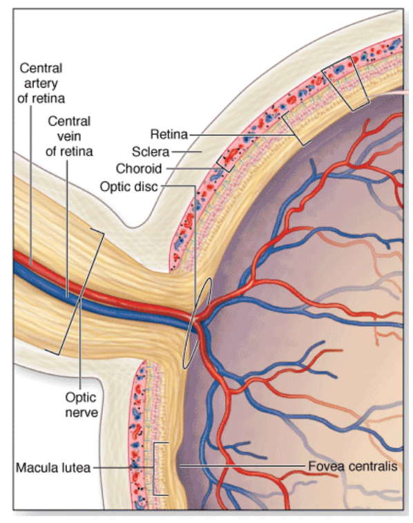 iv. impulses spread along optic radiation to primary visual cortex (occipital lobe).