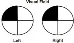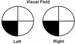LEFT LOWER QUADRANTANOPIA: lesion of right superior optic radiation