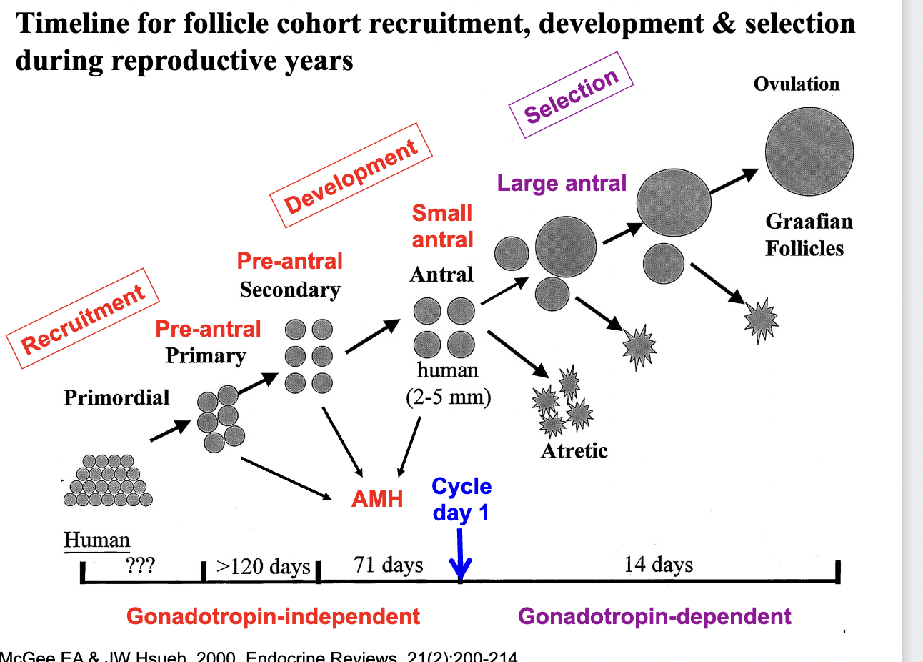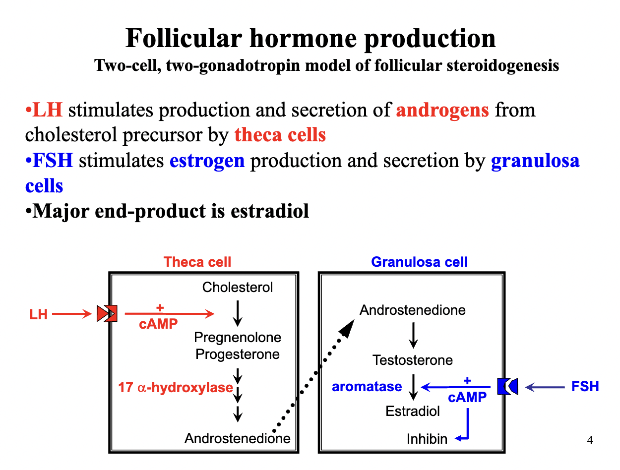 cysts, their developmental state and the roles of LH, FSH, androgen and progesterone