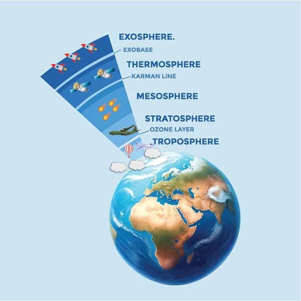 What are the four layers of Earth’s atmosphere?