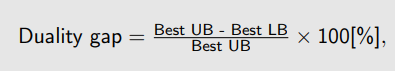 when enumeration is unfinished, the duality gap measures the maximum relative deviation from optimality of the best feasible solution found