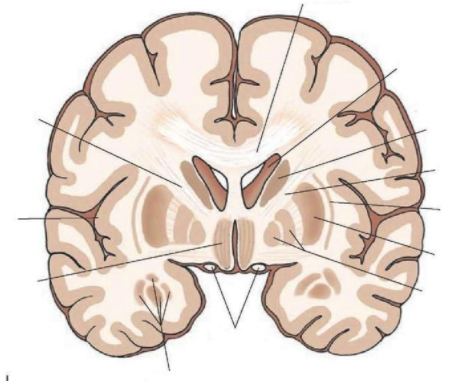 (cerebral cortex, cerebral hemispheres, hippocampus, amygdala, basal ganglia)