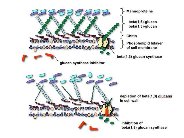 What is the mechanism of action of Echinocandins such as Anidulafungin (Eraxis)?