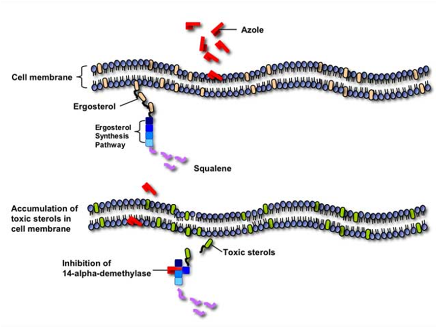 They inhibit ergosterol synthesis, which is needed for the cell membrane
