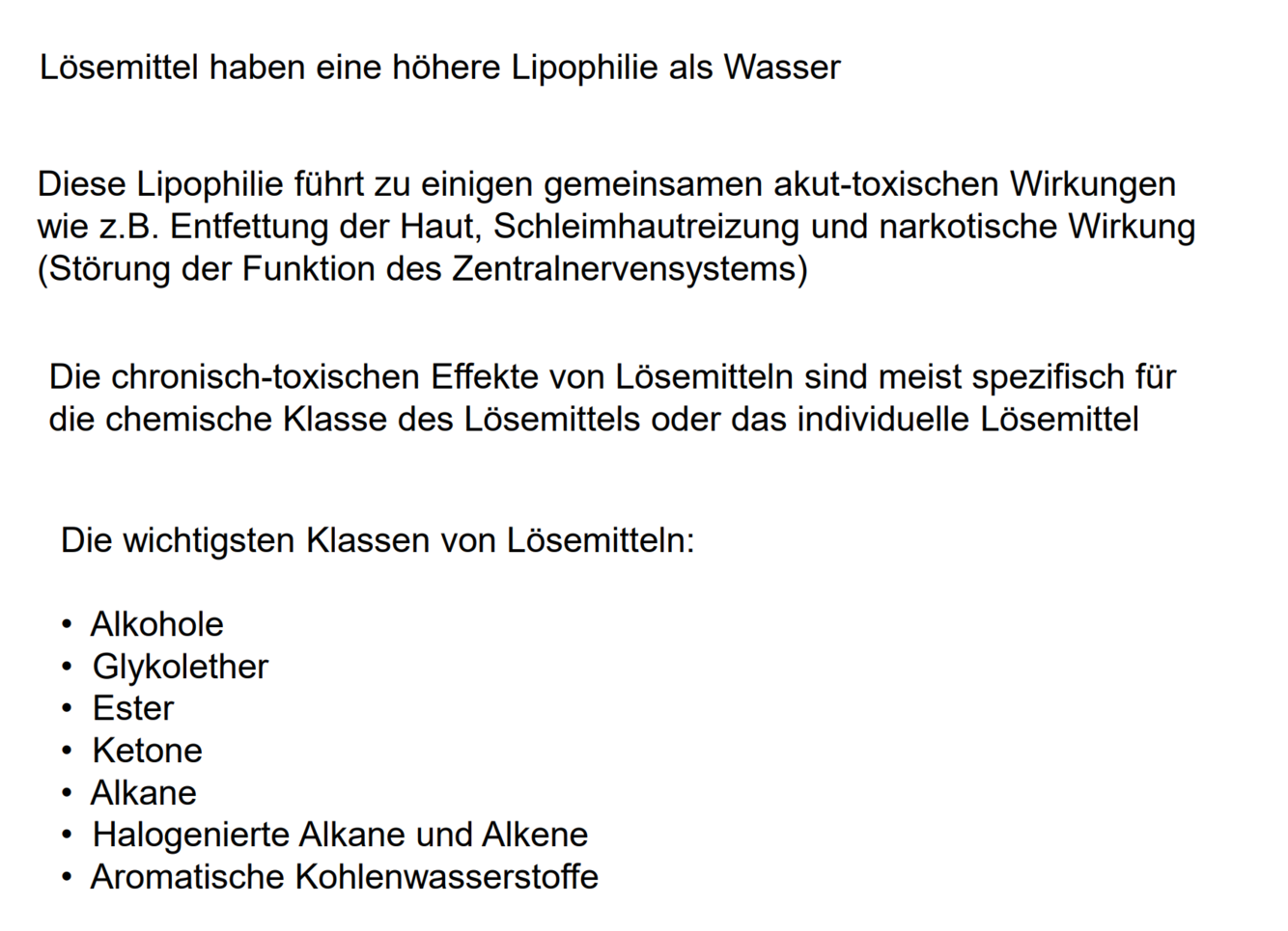 Lösemittel und deren Klassen