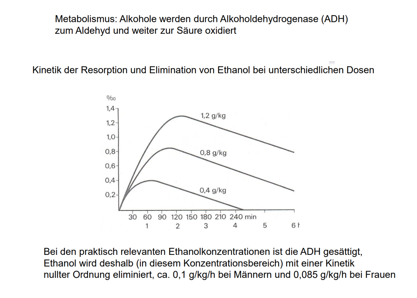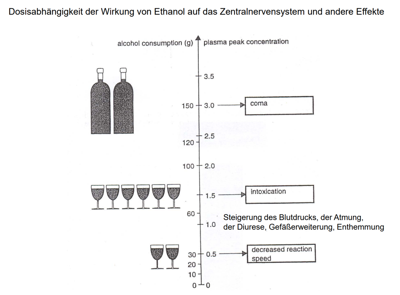 Dosisabhängigkeit der Wirkung von Ethanol auf das Zentralnervensystem und andere Effekte