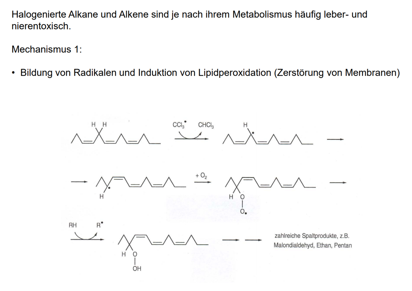 Bildung von Radikalen und Induktion von Lipidperoxidation
