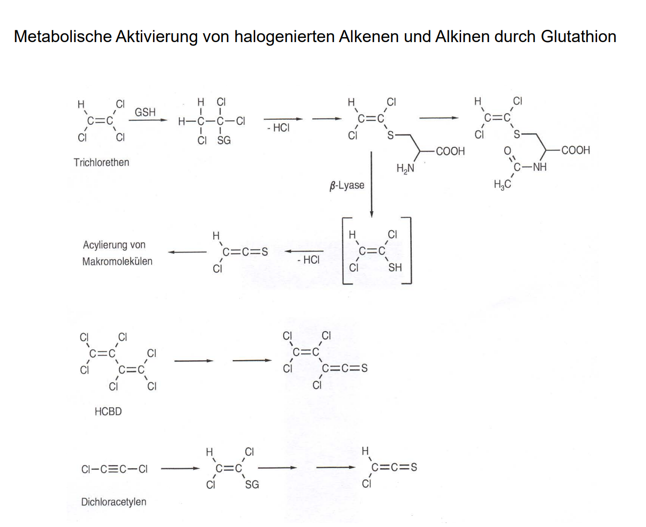 Metabolische Aktivierung von halogenierten Alkenen und Alkinen durch Glutathion