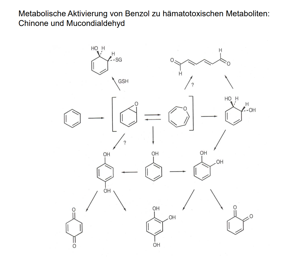 Metabolische Aktivierung von Benzol zu hämatotoxischen Metaboliten: Chinone und Mucondialdehyd