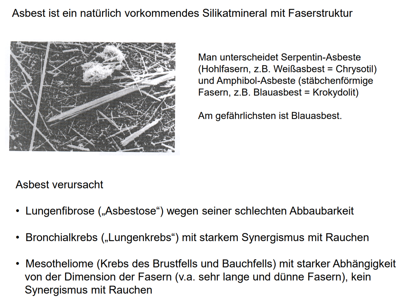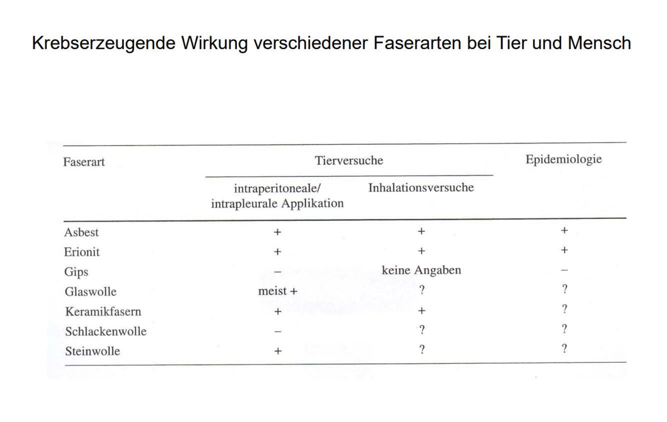 Krebserzeugende Wirkung verschiedener Faserarten bei Tier und Mensch