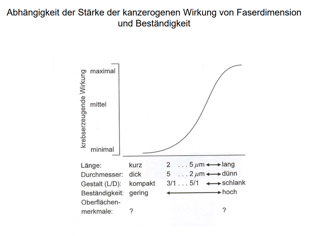 Abhängigkeit der Stärke der kanzerogenen Wirkung von Faserdimension und Beständigkeit