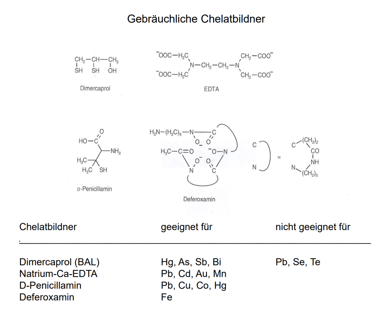 Gebräuchliche Chelatbildner