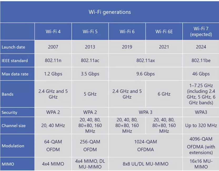 TABLA WIFI GENERATION