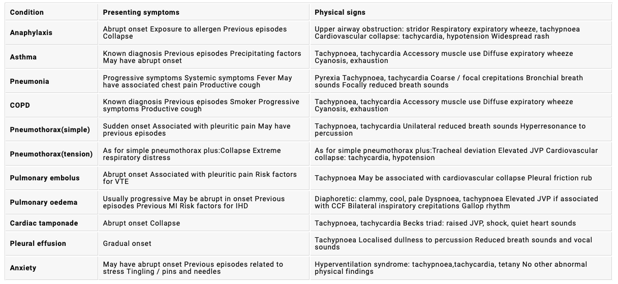What are some differentials you need to consider in ED when someone presents with SOB?