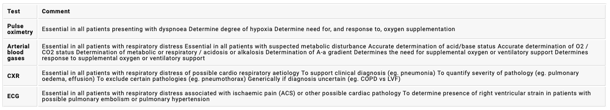 What investigations should you do in ED if someone presents with SOB?