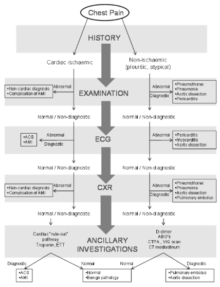 How should you approach a patient in ED with chest pain?