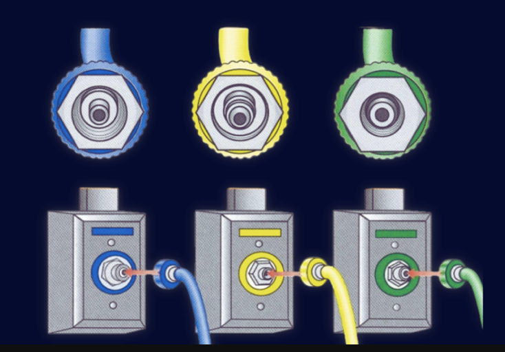 Sistema de Segurança de índice de Diâmetro (DISS): projetado para prevenir erros de conexão entre linhas de fornecimento de gases hospitalares para a estação de trabalho.