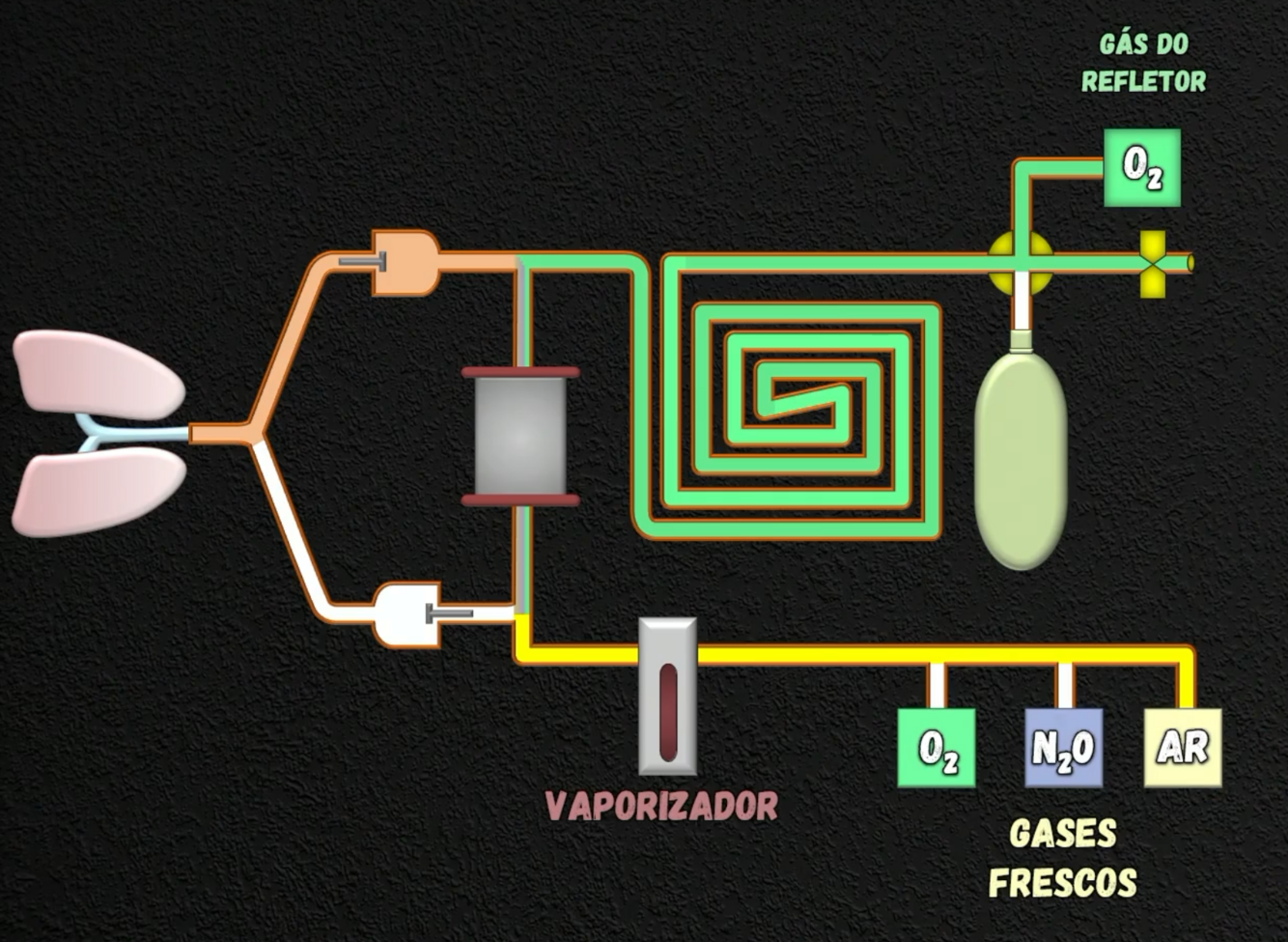 Como princípios básicos de montagem, NÃO é permitido colocar no sistema circular com absorvedor de CO2: (4)