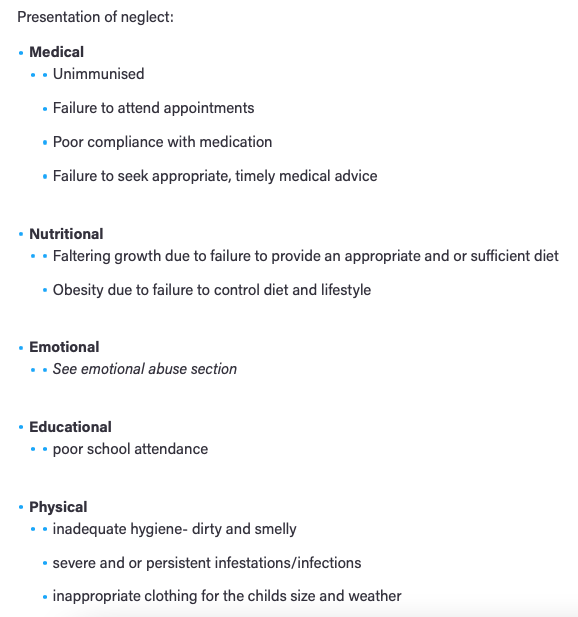 Persistent failure to meet the childs basical physical or psychological needs that is likely to result in the serious impairment of the childs health or development