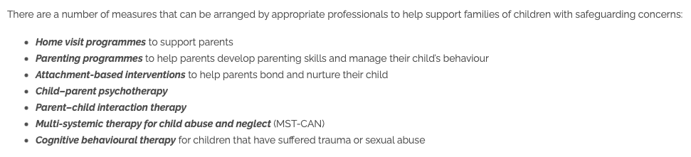 What are some measures that can be put into place for families with safeguarding concerns?