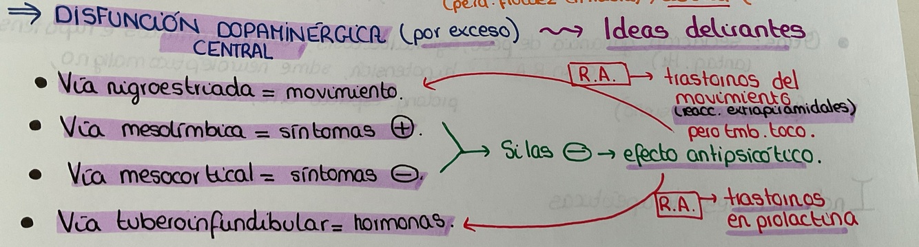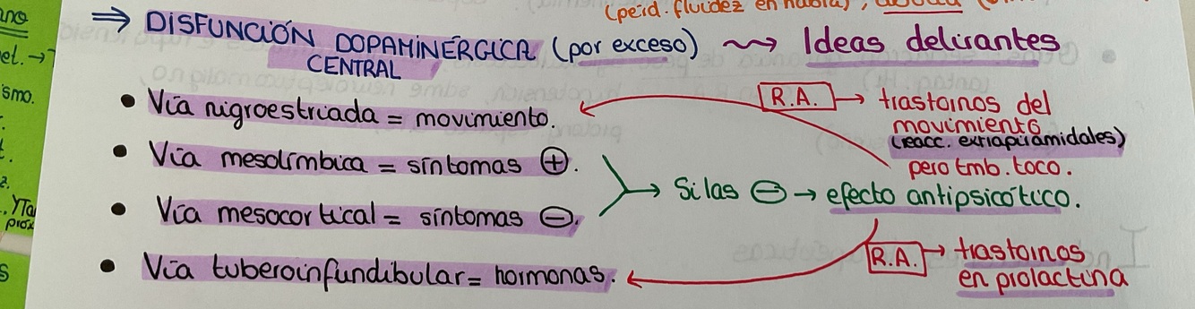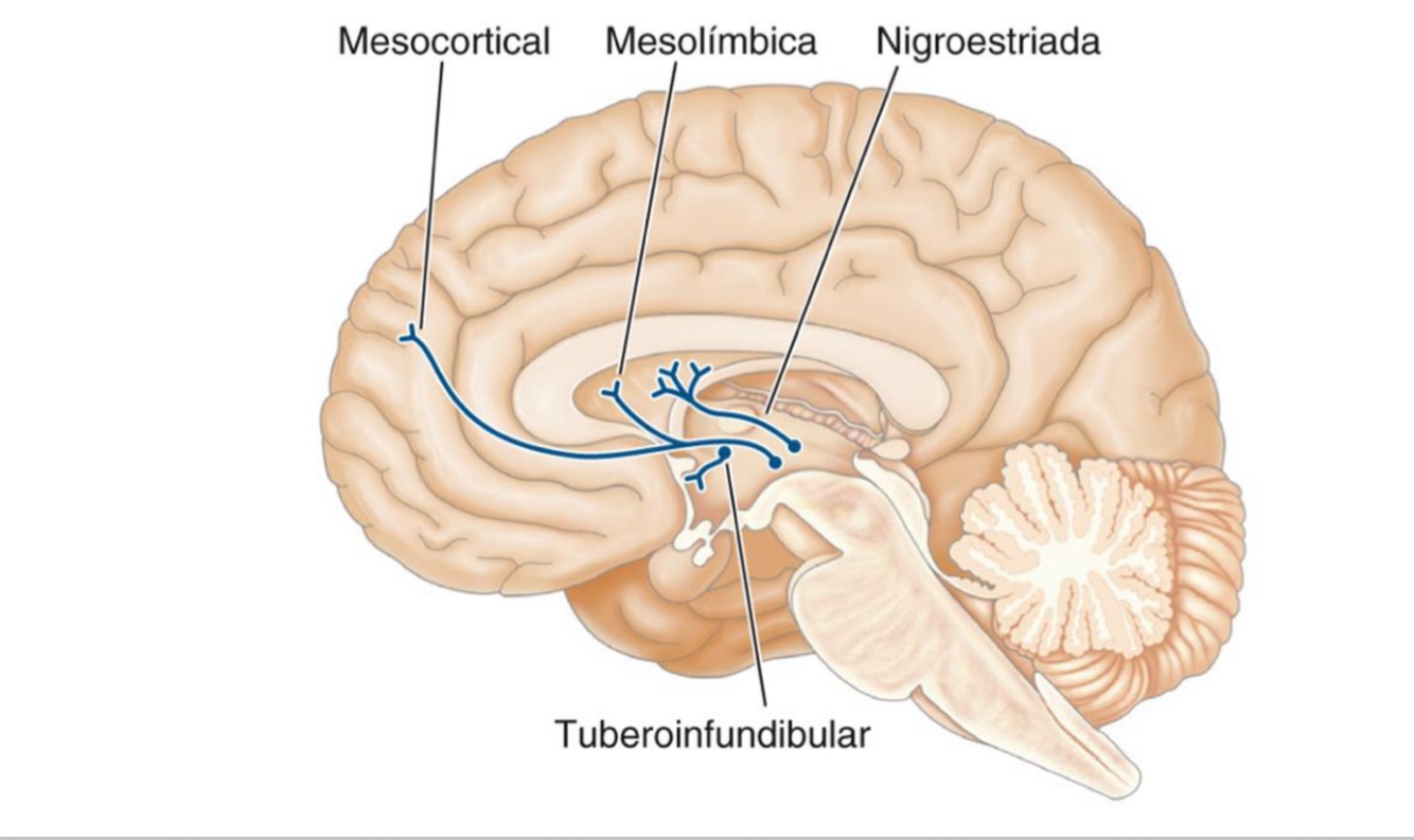 Se inhibe la migro estriada y vemos REACCIONES EXTRAPIRAMIDALES, se inhibe la vía tuberoinfundibular y tenemos problemas con la PROLACTINA