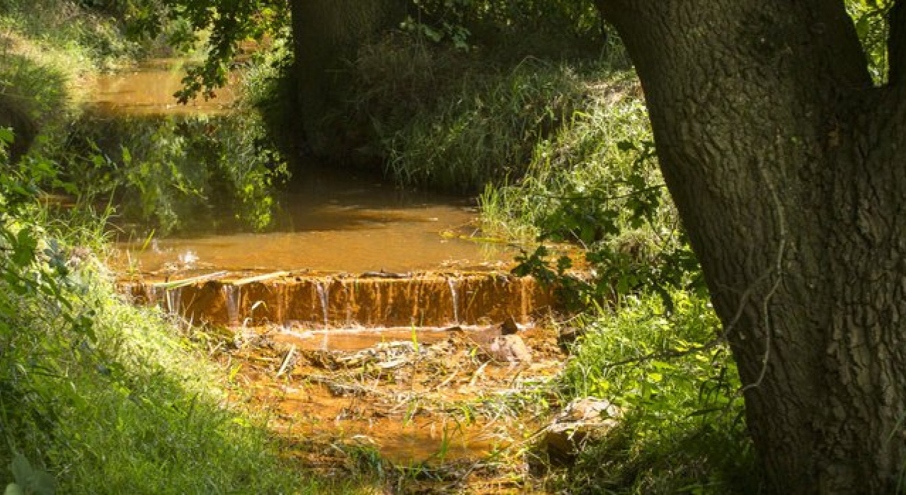 d. De oxidatie van ijzerverbindingen in het grondwater dat aan het oppervlak komt waardoor er een ijzeroerbank ontstaat