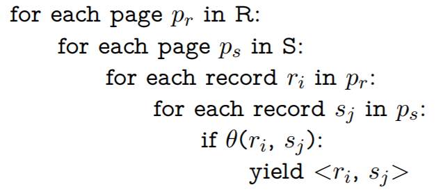 i.e. Scan all pages of R ([R]) and then for each page of R, scan all pages of S.