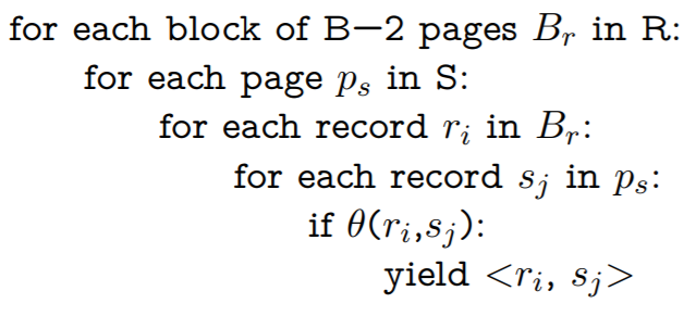 i.e. scan all pages of R, then for each chunk (there are [R] / B−2 of them) scan all pages of S.