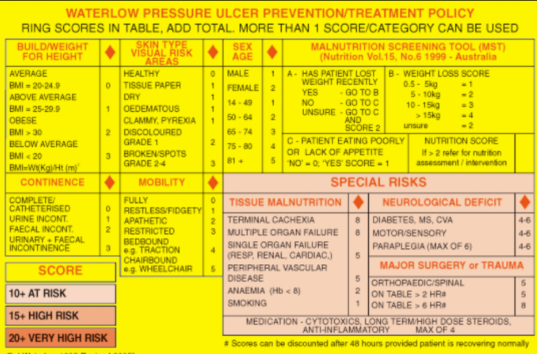 Six factors contribute to risk of and intensity of pressure ulcer: