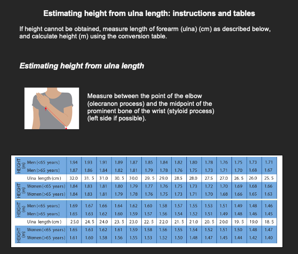 How can you estimate somebody’s height if they are unconscious or immobile?