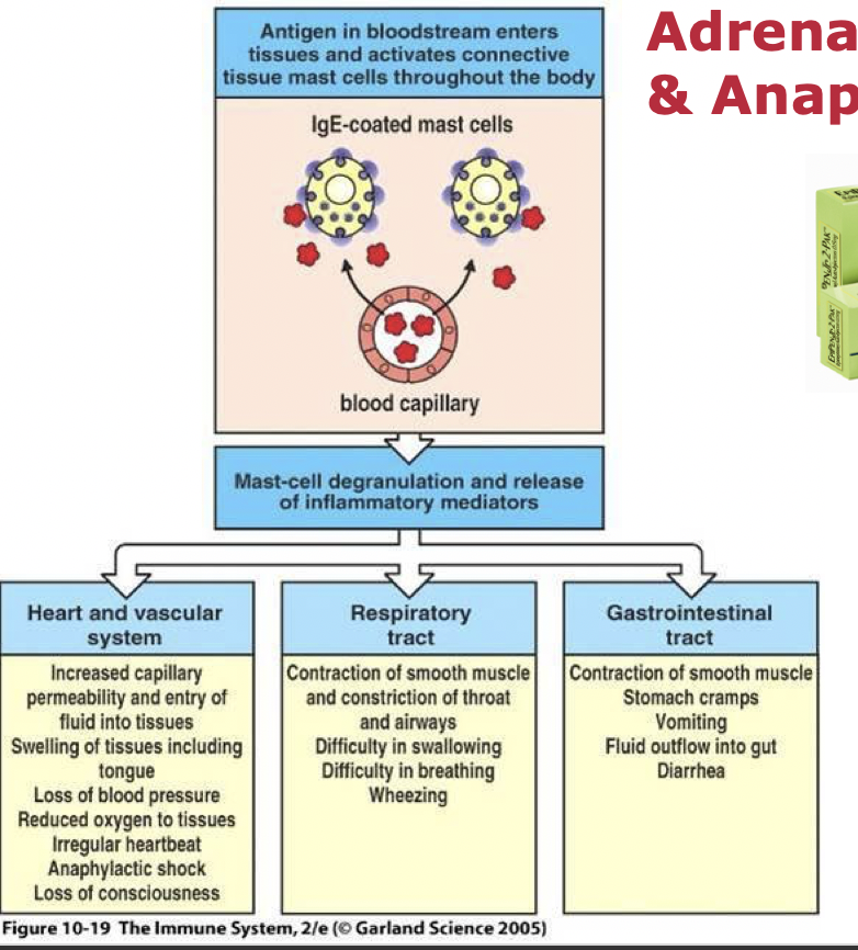 Adrenaline (non-selective adrenoreceptor agonist) e.g. in Epipen