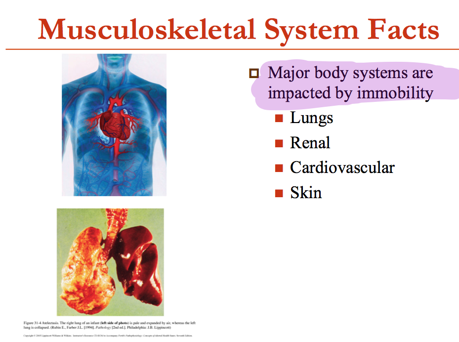 What are the 4 major body systems that are impacted by immobility?