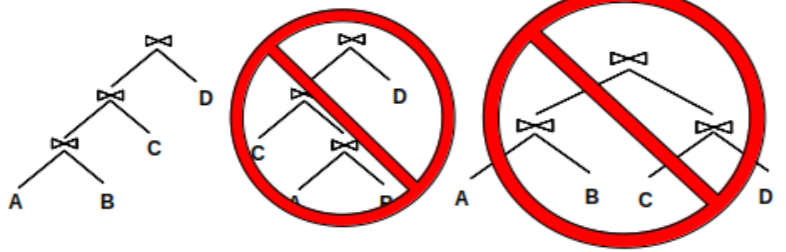 Why query optimizers commonly consider only left deep plans?