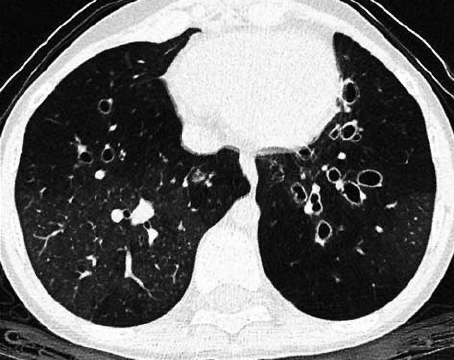 Recurrent infections result in bronchiectasis secondary to damage to the bronchial walls