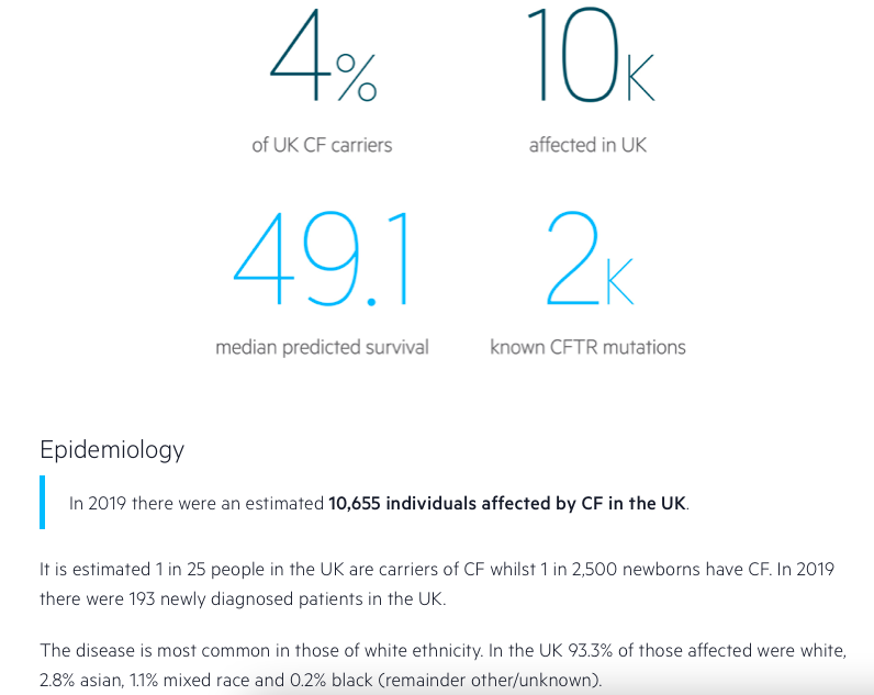 Autosomal recessive multi-system disease with predominantly respiratory symptoms. 1 in 25 are carrier, 1 in 2500 have it