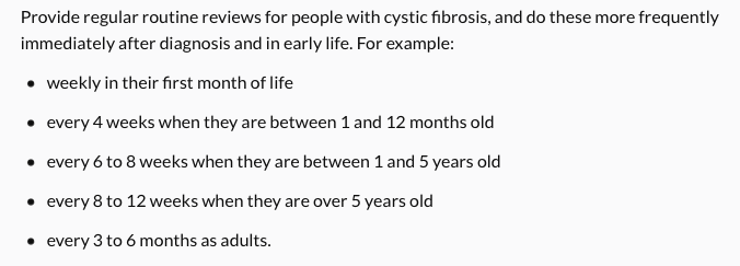 What monitoring is done for a child with CF in general?