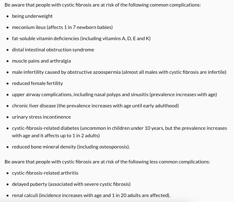 What are some complications of Cystic Fibrosis?