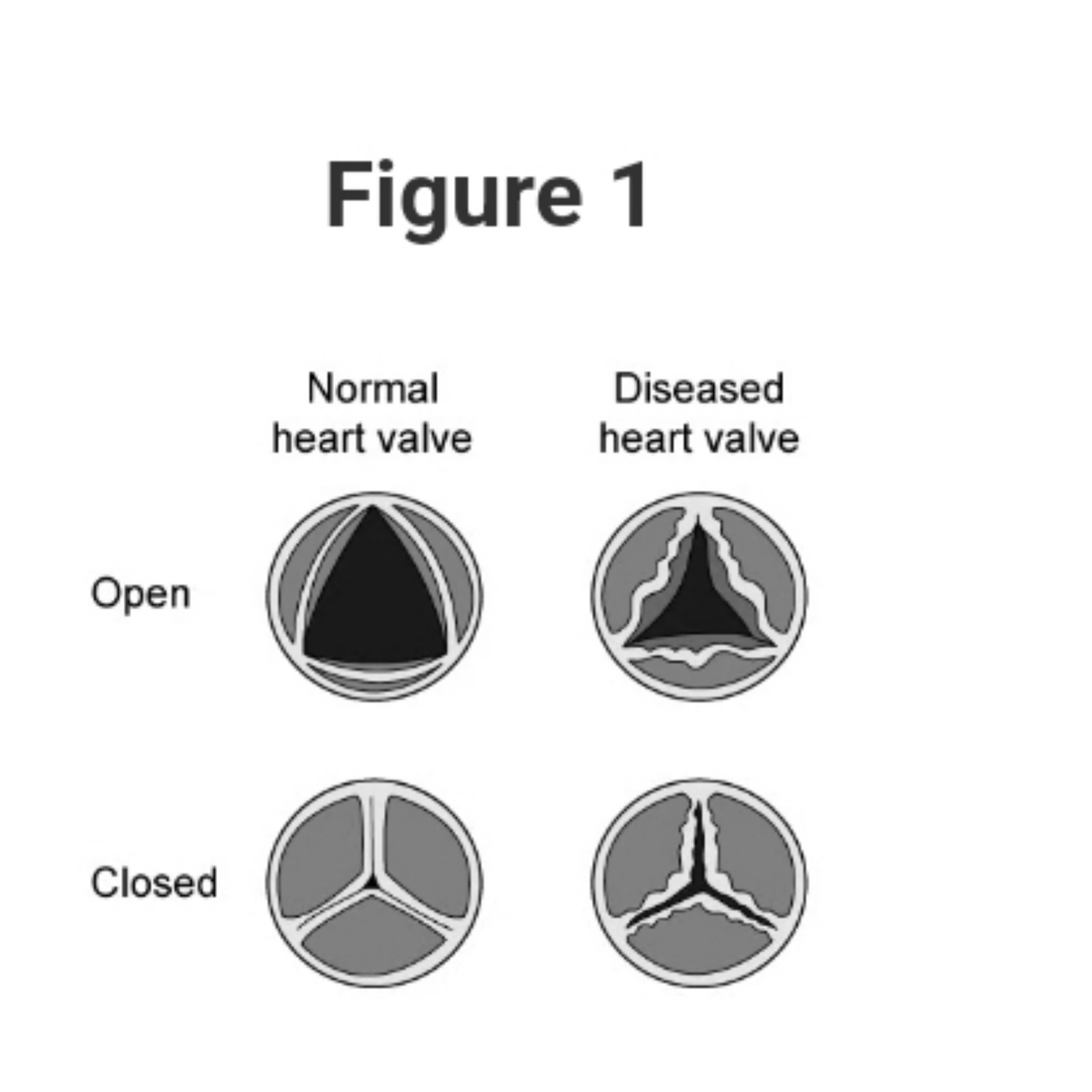 Figure 1 shows the difference between a normal heart valve and a diseased heart valve when open and closed.