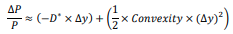 The convexity becomes insignificant in distorting the price as duration is accurate for small changes in yield